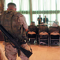 "Чем больше здесь будет иностранных солдат, тем меньше нам потребуется своих",— сказал на прошлой неделе Дональд Рамсфельд. Однако понятно, что Македония со Шри-Ланкой положение не спасут. А крупные страны входить в Ирак не спешат.