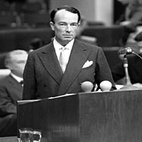 ФОТО: AP Выступление Уильяма Шоукросса с обвинительной речью на Нюрнбергском трибунале сделало его едва ли не самым известным британским юристом XX века |