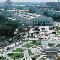 ФОТО: ВИКТОР ВАСЕНИН Притулившийся на краю Манежной площади Манеж (внизу) оказался на ее фоне недостаточно прекрасным и попал в список градостроительных начинаний Юрия Лужкова (вверху) — как объект, требующий решительного усовершенствования |