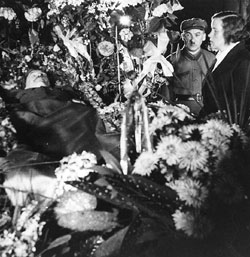 ФОТО: РГАКФД\РОСИНФОРМ В 1935 году Генрих Ягода (справа от гроба) сменил на посту шефа Лубянки Вячеслава Менжинского (в гробу). Но уже через два года Ягода стал врагом народа, и его тоже пришлось менять |