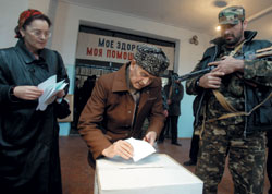 ФОТО: ИЛЬЯ ПИТАЛЕВ Несмотря на неожиданную демократичность чеченских выборов, решающее слово все равно остается за Кремлем |