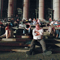 Элис, Анн-Арбор (Мичиган) "Примерно шесть месяцев назад моя жена решила запастись водой. Поставила две канистры в подвал. Теперь я благодарю ее за предусмотрительность. По крайней мере, у нас была вода, чтобы почистить зубы при свечах. Я, конечно, не упрекаю Буша, но не могу отделаться от одной мысли. Флорида, 11 сентября, Ирак, теперь вот это. Может, Буш просто приносит несчастья?" Майкл Полсинелли, Кливленд (Огайо) "У меня было впечатление, что мы перенеслись во времени на несколько десятилетий назад. Меня совершенно поразили люди, которые шли по улицам и прижимали к уху транзисторные приемники. Мобильные телефоны не работали, и у телефонных будок выстраивались огромные очереди. Но многие таксофоны не работали из-за того, что о них давным-давно забыли". Дэвид Титер, Нью-Йорк |
