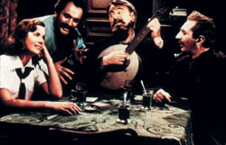 Апогеем внимательного чтения русской классики стал "Доктор Живаго" (1965) вполне вменяемого в иных своих фильмах англичанина Дейвида Лина. Демонстрация 1905 года двигалась по улице Кропоткинской, гулаговская стройка напоминала летний молодежный лагерь, в поездах жгли костры и танцевали вприсядку. Но все бы ничего, если бы не расписная балалайка, которую в семье Живаго, как-никак интеллигентов Серебряного века, передавали по наследству. Представляются московские посиделки: Бердяев на балалайке наяривает, Пастернак — на ложках, Андрей Белый частушками сыплет.