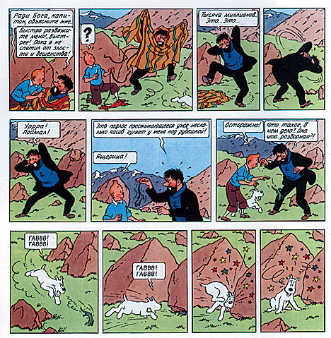 Кстати о США. Здесь дела с комиксами действительно обстоят гораздо лучше, чем в других странах, но Америка вовсе не является единственным центром культуры комикса. Нельзя даже точно сказать, где появились первые комиксы — в Америке или Европе. Историю комиксов см. во "Власти" N21 за 2002 год. Во всяком случае, первая книга приключенческих комиксов, задолго до Тарзанов-Суперменов, была опубликована в Бельгии: она вышла в 1930 году и называлась "Приключения Тэнтэна в Стране Советов".