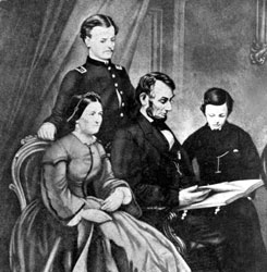 Авраам Линкольн хорошо относился к женщинам вообще и к своей жене в частности (на фото — президент в кругу семьи). Но это не спасло его от обвинения в том, что он хочет отдать американских женщин неграм |