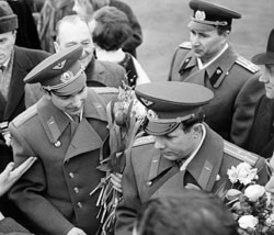 ФОТО: РОСИНФОРМ В Норвегию перед Хрущевым приезжали космонавты Гагарин и Быковский (на переднем плане). Успеху визита Никиты Сергеевича это помогло (на заднем плане - Аркадий Жук) |