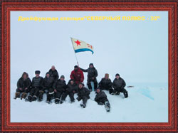 ФОТО: ИЗ АРХИВА НАЧАЛЬНИКА СТАНЦИИ ВЛАДИМИРА КОШЕЛЕВА В апреле прошлого года полярники станции "СП-32" демонстрировали энтузиазм и флаг советского ВМФ |
