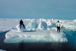 Шильников и Кессель прилетели в лагерь "Борнео", километрах в ста от Северного полюса. Этот лагерь несколько лет назад основал французский предприниматель Бернар Бьюк, который возит туда туристов со всего мира. Организаторы "СП-32" — ряд частных лиц и коммерческих организаций, занимающихся арктическим туризмом,— договорились с Бернаром, что тот позволит разведчикам два дня пожить в его лагере, но два дня прошли, а Шильников и Кессель так и не смогли долететь до разведанного района из-за плохой погоды. "В таких случаях надо просто ждать, а нас время поджимало",— признался Сергей Кессель.