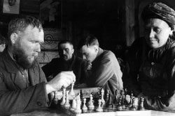 ФОТО: РГАКФД\РОСИНФОРМ Рассказывая о преимуществах социализма в деле организации досуга трудящихся, советская пресса использовала самые разнообразные изобразительные средства — от социалистической пасторали и волшебной сказки о трудовых успехах до натюрморта с "Москвичом" и фотоиллюстрации к ненаписанному пролетарскому роману "Мат" |