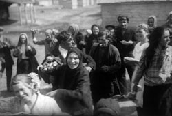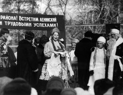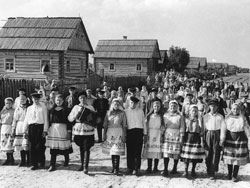 ФОТО: РГАКФД\РОСИНФОРМ У лубочных (внизу) колхозных крестьян жизнь была еще тяжелее, чем у настоящих (вверху): первые, даже отдыхая, строили коммунизм, вторые, даже строя коммунизм, изредка все-таки отдыхали |