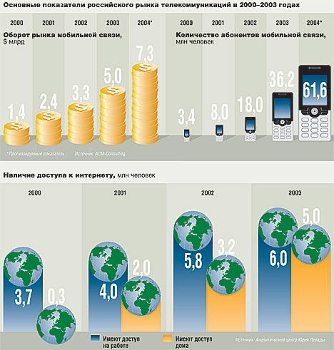 Четыре года назад сотовый телефон был атрибутом, подчеркивающим социальный статус. Сегодня это продукт массового рынка. Соответственно, изменились и масштабы основных участников рынка. В 2000 году МТС и "Вымпелком" делили только московский рынок. Ни одна из этих сетей не работала даже в Санкт-Петербурге, а их зарубежные совладельцы еще не решили, нужно ли вообще строить сети в регионах. Сегодня три сотовые компании так называемой большой тройки — МТС, "Вымпелком" и "Мегафон" — имеют почти стопроцентное покрытие российской территории, владеют крупнейшими операторами в странах СНГ и уже прицениваются к восточноевропейским и ближневосточным сотовым компаниям.