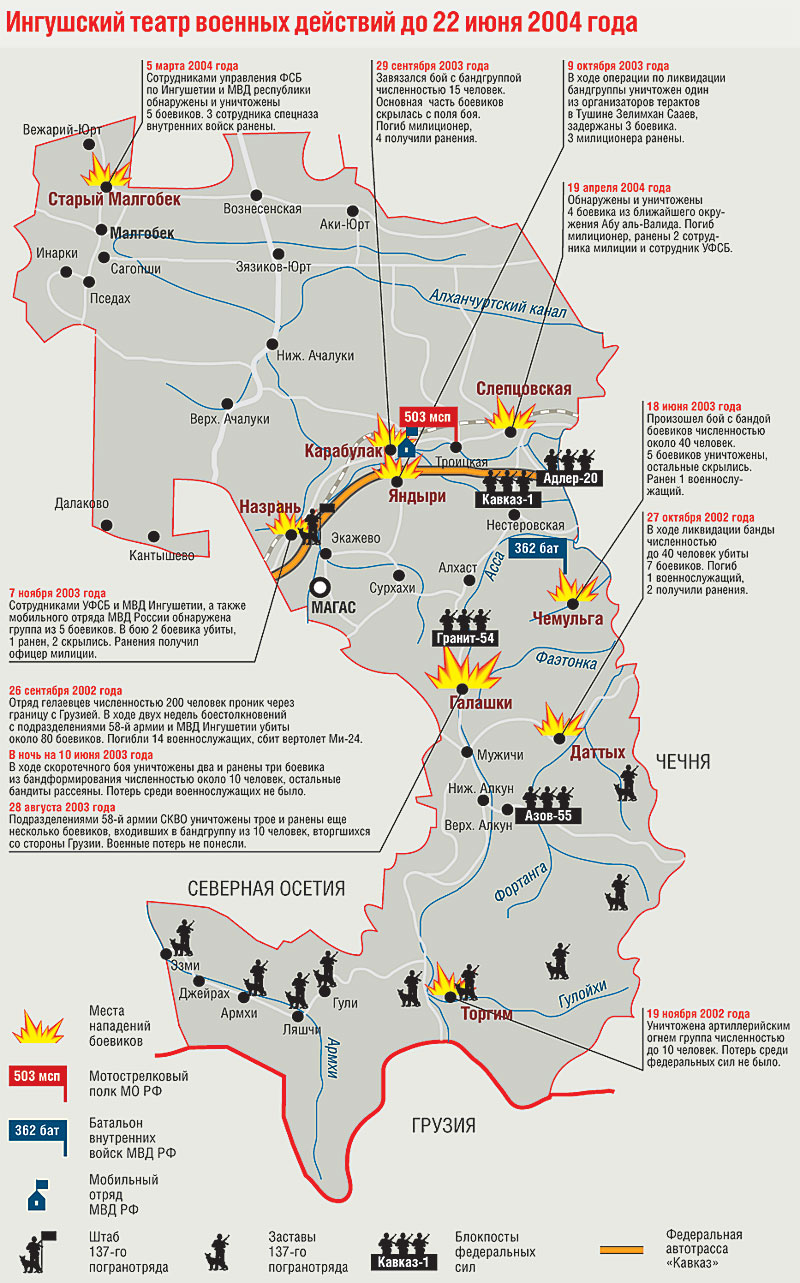 Ингушский театр военных действий до 22 июня 2004 года