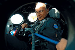 Справка у Берта Рутана и Пола Аллена была. Временную лицензию сроком на год на пилотируемые орбитальные полеты на SS1 они получили в Федеральном авиационном агентстве (FAA) США 1 апреля этого года. Получили на удивление легко, если вспомнить, что пошел уже второй год, как в США полеты на шаттлах заморожены на неопределенное время, и что до сих пор FAA выдавало лицензии только на беспилотные коммерческие запуски. А построенное в ударные сроки из совершенно новых, не проверенных в условиях космоса композитных материалов космическое такси на совершенно новом, никому не известном топливе было испытано 13 мая этого года сразу с живым, правда, довольно пожилым человеком на борту. 62-летний Майк Мелвилл взлетел на SS1 до высоты 65 км и удачно спланировал обратно в мохавский аэропорт. И вот в прошлый понедельник тот же Майк Мелвилл, уже справивший свой 63-й день рождения, улетел на SS1 уже на высоту 100 км 124 м, то есть стал астронавтом.