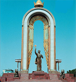 Но не все советские памятники пережили перестройку, независимость, гражданскую войну и национальное примирение так же благополучно. На главной площади Душанбе за это время сменилось три символа, а сама площадь трижды меняла название. В советские времена она, естественно, называлась площадью Ленина и стоял на ней соответствующий памятник. Затем в начале 90-х монумент, как водится, снесли, на его месте воздвигли памятник Фирдоуси, а саму площадь переименовали в площадь Свободы. Но жизнь свободы и памятника великому поэту X-XI веков оказалась недолгой: уже в середине 90-х площадь стала носить имя Сомони (таджикское произношение династии Саманидов, правившей обширной территорией от Каспия до границ современного Китая в IX-X веках), а ее композиционным центром стал памятник одному из императоров династии. Злые языки поговаривают, ручаясь за достоверность информации, что голову памятника лепили с портрета президента Рахмонова. Какое-то сходство уловить действительно можно.