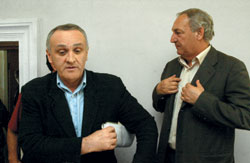 ФОТО: ВАЛЕРИЙ МЕЛЬНИКОВ Значительная часть абхазцев, проголосовавших за Сергея Багапша (справа), на самом деле отдала свои голоса Александру Анквабу (слева) |
