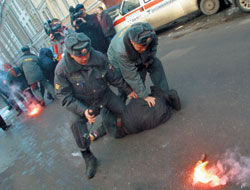 На прошлой неделе прокуратура Москвы переквалифицировала обвинение членам Национал-большевистской партии, участвовавшим в акции протеста в приемной администрации президента России 14 декабря 2004 года. Напомним, 40 активистов НБП прорвались в здание приемной и потребовали встречи с Владимиром Путиным. В течение часа нацболы, забаррикадировавшись в вестибюле, размахивали из окна транспарантом "Путин, уйди сам!" и выкрикивали антипрезидентские лозунги. Акцию прекратили сотрудники Федеральной службы охраны. Для этого пришлось взломать двери.