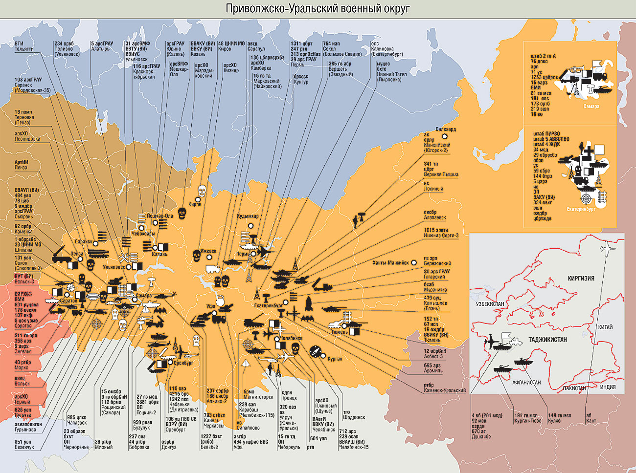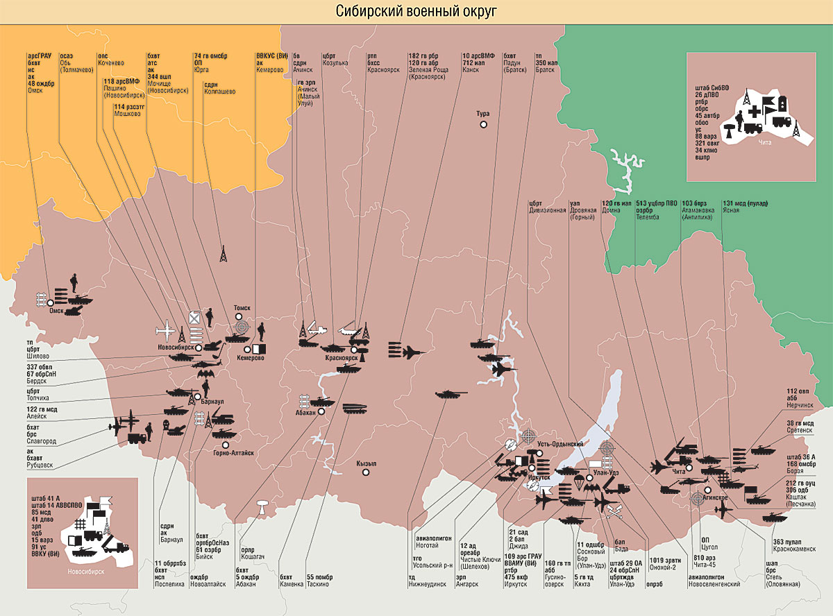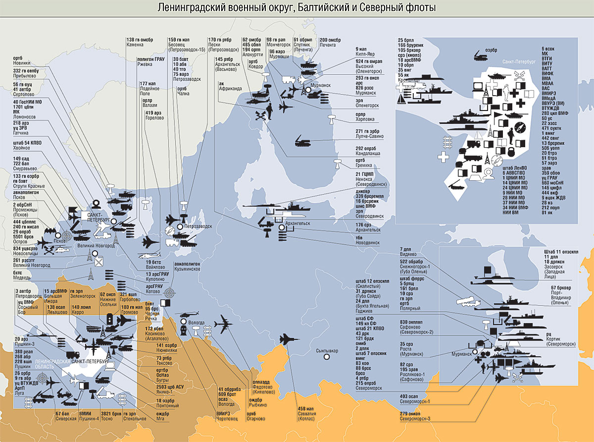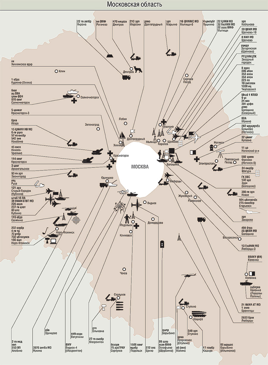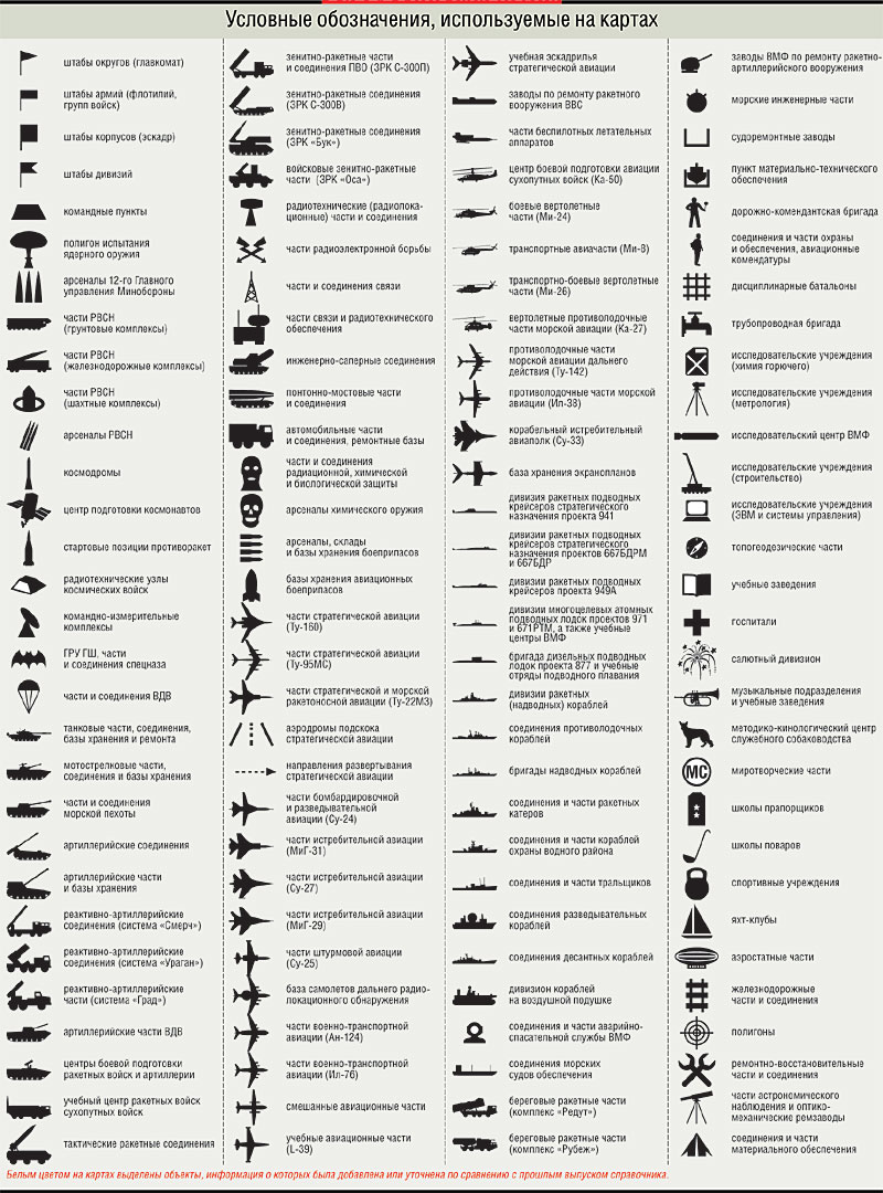 Сокращения А — армия аа — армейская авиация аб — авиабаза абб — артиллерийская база боеприпасов абв — артиллерийская база вооружения абон — авиационная бригада особого назначения абр — артиллерийская бригада абсрлдн — авиабаза самолетов радиолокационного дозора и наведения АВВСПВО — армия ВВС и ПВО автбз — автобаза автбр — автомобильная бригада автд — автомобильное депо аг — авиагруппа ад — артиллерийская дивизия адон — авиадивизия особого назначения АК — армейский корпус ак — авиационная комендатура ап — артиллерийский полк апон — авиационный полк особого назначения арз — авиаремонтный завод арсВМФ — арсенал ВМФ арсГРАУ — арсенал ГРАУ арсРВСН — арсенал РВСН арсХО — арсенал химического оружия АртИИ — Артиллерийский инженерный институт АртП — артиллерийский полигон артрз — артиллерийский ремонтный завод ас — артиллерийский склад АСУ — автоматизированная система управления атб — авиационная техническая база атс — авиационный технический склад бад — бомбардировочная авиадивизия бап — бомбардировочный авиаполк бв — база вооружения БВМБ — Балтийская военно-морская база БВМИ — Балтийский военно-морской институт брат — база резерва авиационной техники брдк — бригада десантных кораблей брковр — бригада кораблей охраны водного района брмо — бригада материального обеспечения брнк — бригада надводных кораблей брпл — бригада подводных лодок брплк — бригада противолодочных кораблей брремк — бригада ремонтируемых кораблей бррзк — бригада разведывательных кораблей бррка — бригада ракетных катеров брс — база резерва самолетов брсв — база резерва самолетов и вертолетов брсо — бригада судов обеспечения брсремк — бригада строящихся и ремонтируемых кораблей брсремпл — бригада строящихся и ремонтируемых подводных лодок брсс — бригада спасательных судов бртщ — бригада тральщиков бруремк — бригада учебных и ремонтируемых кораблей брхв — база ремонта и хранения вооружения бсхзрв — база снабжения и хранения зенитно-ракетного вооружения брхсс — база ремонта и хранения средств связи брхт — база ремонта и хранения техники бтб — береговая техническая база бтрз — бронетанковый ремонтный завод БФ — Балтийский флот бхаб — база хранения авиационных боеприпасов бхавт — база хранения автомобильной техники бхат — база хранения авиационной техники бхб — база хранения боеприпасов бхвт — база хранения вооружения и техники бхрбпла — база хранения и ремонта беспилотных летательных аппаратов бхрт — база хранения ракетной техники бхсс — база хранения средств связи бхтс — база хранения техники связи бхэ — база хранения экранопланов ВА — воздушная армия ВАВКО — Военная академия воздушно-космической обороны ВАВПВО — Военная академия войсковой ПВО ВАвтИ — Военный автомобильный институт ВАГШ — Военная академия Генерального штаба ВАИУ — Военное авиационное инженерное училище ВАРВСН — Военная академия РВСН варз — военный авторемонтный завод ВАРХБЗ — Военная академия радиационной, химической и биологической защиты ВАС — Военная академия связи вб — военная база ВАКУ — Высшее артиллерийское командное училище ВАТТ — Военная академия тыла и транспорта ВВА — Военно-воздушная академия ВВАИУ — Высшее военное авиационное инженерное училище ВВАИУРЭ — Высшее военное авиационное инженерное уч