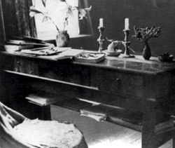 Для музея, уверен Анатолий Найман (вверху), нужно совсем немного: стол, который здесь был (внизу) или такой же, матрас, подпертый вместо одной ножки тремя кирпичами, полка из струганой доски и радиоприемник "Рекорд" |