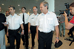 ФОТО: ВАЛЕРИЙ МЕЛЬНИКОВ Государство всегда стремится к тому, чтобы российские летчики в конце концов приземлились на родной земле. Особенно если за рубежом их обвиняют в торговле оружием (на фото — российские летчики, задержанные в Судане в 2003 году) |