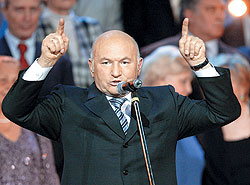ФОТО: ВЛАДИМИР ДОДОНОВ Юрий Лужков не впервые играет роль паровоза. В 1996 году он тащил на выборах Бориса Ельцина (77% по Москве), в 1999-м — блок "Отечество — Вся Россия" (41%, втрое больше, чем в среднем по России), а в 2003-м — "Единую Россию" (34%, что немало, учитывая повышенный градус оппозиционности московских избирателей) |