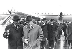 ФОТО: РГАКФД/РОСИНФОРМ "В 1972 году странами--членами СЭВ на высоком политическом уровне (на фото — товарищ Брежнев с руководителями братских партий) было принято решение о строительстве в Иркутской области комбината мощностью 500 тыс. тонн целлюлозы в год. Строить начали (внизу), и начались трудности. Ну и решили все это взвалить на меня. Комбинат и город построили в срок. Опыта-то уже хватало. Я, правда, жил на стройке" |