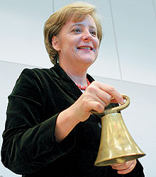 На минувшей неделе разрешился затянувшийся политический кризис в Германии, случившийся после того, как парламентские выборы в стране не выявили победителя. Крупнейшим политическим партиям страны — Социал-демократической партии и блоку ХДС/ХСС,— как и предсказывали эксперты, пришлось забыть об извечном соперничестве и договариваться о создании коалиционного правительства. После упорных переговоров нынешний канцлер Герхард Шредер согласился уступить свое кресло лидеру правых Ангеле Меркель. В обмен социал-демократы получили 8 из 14 министерских постов, в том числе 4 из 6, считающихся ключевыми: иностранных дел, финансов, юстиции и труда. Правым отошли министерства обороны и экономики. Кроме того, по сообщениям из Берлина, лидеры правых были вынуждены согласиться с требованием социал-демократов пересмотреть свою программу реформ, направленных на поддержку германской экономики, против которой активно выступали социал-демократы. Таким образом, Ангела Меркель станет первой в истории бундесканцлершей (то есть Budeskanzlerin). Что же до Шредера, то он, как говорят, уже нашел себе работу в российской газовой монополии.