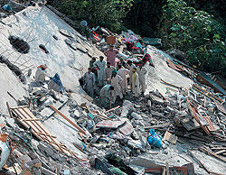 Оказалось, что обрушился современный 12-этажный жилой комплекс "Маргала-тауэрс" (Маргала — название невысоких гор близ Исламабада, с видом на которые модно покупать себе жилье). Кстати, дома в Исламабаде должны строиться с учетом возможных землетрясений, так что проектом "Маргала-тауэрс" уже заинтересовались соответствующие пакистанские ведомства, расследующие дела о коррупции.