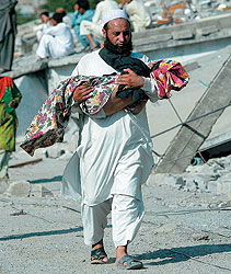 Тем временем пресса и власти соревнуются в том, кто насчитает большее число погибших. Пакистанские газеты, особенно негосударственные, сразу поставили под сомнение официальные данные. Не отстает и телевидение. "Более 3 тысяч погибших",— заявил сразу после землетрясения премьер-министр Шаукат Азиз. "Более 30 тысяч",— тут же сообщил телеканал "Аадж-ТВ". "Число погибших приблизилось к 20 тысячам",— говорит Азиз. "30-40 тысяч",— отвечает пресса. По оценкам газеты Nation, число жертв может приблизиться к 200 тысячам. Вероятно, правительство просто опирается на более оптимистичные и осторожные источники, чем пресса. Ведь достоверных данных пока нет ни у кого — поскольку многие районы страны оказались отрезанными от центра, а завалы на дорогах будут разобраны еще не скоро, точную информацию мы узнаем спустя не одну неделю.