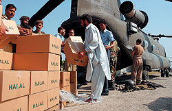 ФОТО: AP Самый распространенный способ оказания помощи терпящим стихийные бедствия — доставка гуманитарных грузов и предметов первой необходимости (на фото). Россия обычно отправляет в зону бедствия еще и спасательные отряды МЧС (внизу), а США и Германия (за кадром) предпочитают помогать деньгами |
