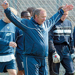 ФОТО: АЛЕКСЕЙ КУДЕНКО Сменившему Газзаева Георгию Ярцеву пришлось объясняться за провалы в Португалии и Эстонии |