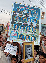 ФОТО: AP Жители Дуджайла (на фото — с портретами погибших родственников) отметили начало суда над Саддамом Хусейном демонстрацией с требованием приговорить его к смертной казни. Многие другие иракцы свой приговор Саддаму уже вынесли (фото внизу) |
