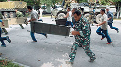 И без того малоэффективное оцепление (три кольца!) с началом операции практически развалилось. Его беспрепятственно пересекали в обоих направлениях сотни гражданских лиц и десятки автомашин. Фильтрационные группы из числа офицеров ОМОНа и Правобережного РОВД не остановили с целью установления личности ни одного из выносивших заложников людей, хотя среди добровольных спасателей были не только жители Беслана, но и множество прибывших из других районов республики граждан. Спрашивается, чем все они отличались от боевиков: незнакомые мужчины, зачастую небритые, испачканные кровью и сажей...