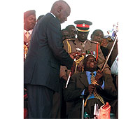 ФОТО: АР Вверху: Мваи Кибаки получает бразды правления от предыдущего президента Кении Даниэля арап-Мои (Найроби, декабрь 2002 года) |