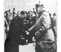 ФОТО: из книги "Штурм власти" Президент Германии Пауль фон Гинденбург (справа) лично приложил руку к распространению коричневой чумы, назначив канцлером Адольфа Гитлера (фото 1934 года) |