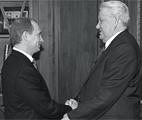 ФОТО: АР Президент России Борис Ельцин уходит в отставку и объявляет своим преемником премьер-министра Владимира Путина. Москва, 31 декабря 1999 года |