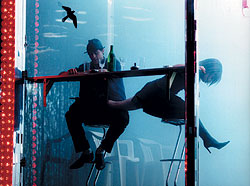 В 2002-м другой литовец Йонас Вайткус поставил в петербургском театре "Балтийский дом" "Мастера и Маргариту", где Мастер (Вадим Яковлев), кажется, вовсе никак не привязан к библейскому сюжету, Воланд (Александр Лыков) носит белый фрак с изяществом шпрехшталмейстера, и все герои существуют синхронно, но не вступая друг с другом в контакт. Зрелище получилось убедительное в одном — в разоблачении веры, даже в сатану. В 2002-м в Берлине "Мастера и Маргариту" поставил в театре "Фольксбюне" Франк Касторф. В спектакле каждый артист играет по две роли: одну — из московской, а другую — из библейской части романа. Действие происходит то ли в баре, то ли на съемочной площадке. А стилистика морфинистского сна поддерживается средствами видеоарта.