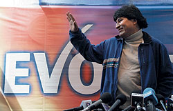 В марте 2005 года Эво Моралес заявил, что возглавляемая им социалистическая партия готова править Боливией. В июне в столице страны прошли организованные не без его участия массовые беспорядки, в результате которых отправился в отставку очередной президент. Были объявлены новые выборы, на которые Моралес вышел со следующей программой: национализация богатой газовой отрасли, изменение конституции (предоставление больших прав индейцам), полная легализация коки и полный отказ от неолиберальной экономической политики, проводившейся предыдущими лидерами государства. По предварительным данным, на выборах 18 декабря Моралеса поддержало около половины боливийских избирателей.