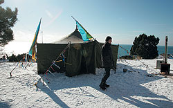 ФОТО: ВАЛЕРИЙ МЕЛЬНИКОВ Десять студентов, защищающих Черноморский флот, заняли пророссийские позиции на мысе Сарыч |