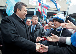 ФОТО: ВАЛЕРИЙ МЕЛЬНИКОВ Предвыборная кампания Виктора Януковича в Крыму опиралась на пророссийски настроенных избирателей и политического тяжеловеса Ефима Звягильского, бывшего премьера, бывшего обвиняемого в коррупции и действующего олигарха. |