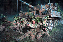 Последний раз такие герои появились, пожалуй, в "Звезде" (2002) Николая Лебедева и фильме белорусского классика Михаила Пташука "В августе 44-го" (2000). Да и то: и гибнущая в немецком тылу полковая разведка у Лебедева, и "чистильщики" Пташука, прочесывающие кишащий всевозможной вооруженной фауной лес на стыке Литвы и Белоруссии, относятся, выражаясь современным языком, к спецподразделениям. И оба фильма стали не столько первыми ласточками новой патриотической волны, сколько последними, запоздалыми образцами советского жанра военно-приключенческого фильма. Пташук воспроизвел его схемы буквально, Лебедев как представитель младшего поколения придал своим героям оскал Рэмбо. Но жанр, кажется, исчерпан надолго, если не навсегда.