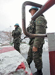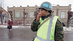 ФОТО: ВАЛЕРИЙ МЕЛЬНИКОВ Власти Южной Осетии рассчитывают, что и после 15 февраля российские миротворцы будут патрулировать Цхинвали, дежурить на блокпостах, досматривать проезжающий транспорт, а стрелять только по мишеням |