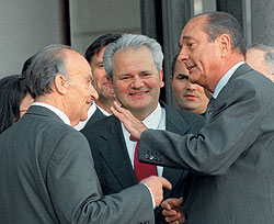 По тому же сценарию развивались события в Боснии. В 1992 году Босния и Герцеговина провозгласила свою независимость. Однако боснийские сербы, получив помощь и вооружение из Сербии, объявили о создании своей республики. При поддержке югославской армии они развернули наступление и за несколько недель подчинили себе большую часть территории Боснии и Герцеговины. Одно из самых тяжких обвинений по боснийскому обвинительному акту, выдвинутое против Милошевича,— массовое уничтожение боснийских мусульман. Ужасающей была расправа более чем над 7 тысячами мусульман в Сребренице. В распоряжении обвинения оказалась пленка с записью этих казней, которая демонстрировалась в суде как доказательство.