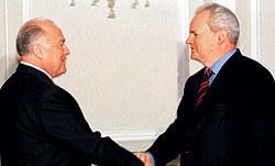 ФОТО: ИЛЬЯ ПИТАЛЕВ 11 марта 2006 года: Слободан Милошевич предстал перед судом более суровым, чем Гаагский |