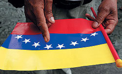 ФОТО: REUTERS Венесуэльцы пока еще не сразу могут отличить новый флаг от старого |