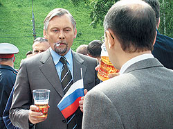 ФОТО: НИКОЛАЙ ЦЫГАНОВ Мэр Нижнего Новгорода Вадим Булавинов не только отстоял для своего города право развешивать сколько угодно государственных флагов РФ когда угодно, но и сам лично старается не выпускать его из рук |