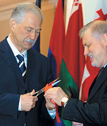 ФОТО: НИКИТА ИНФАНТЬЕВ По замыслу президентской администрации партия "Единая Россия" (слева — ее председатель Борис Грызлов) и Российская партия жизни (справа — ее председатель Сергей Миронов) разделят партийную систему РФ между собой |