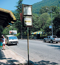 ФОТО: БОРИС ВОЛХОНСКИЙ Абхазы как могут стараются стереть память о тех временах, когда Абхазия входила в состав Грузии (на фото — автобусная остановка в Гагре) |