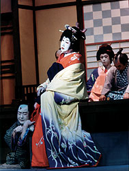 (спектакль "Самоубийство влюбленных в Сонэдаки", японская труппа кабуки "Тикамацу-дза", 2003) |